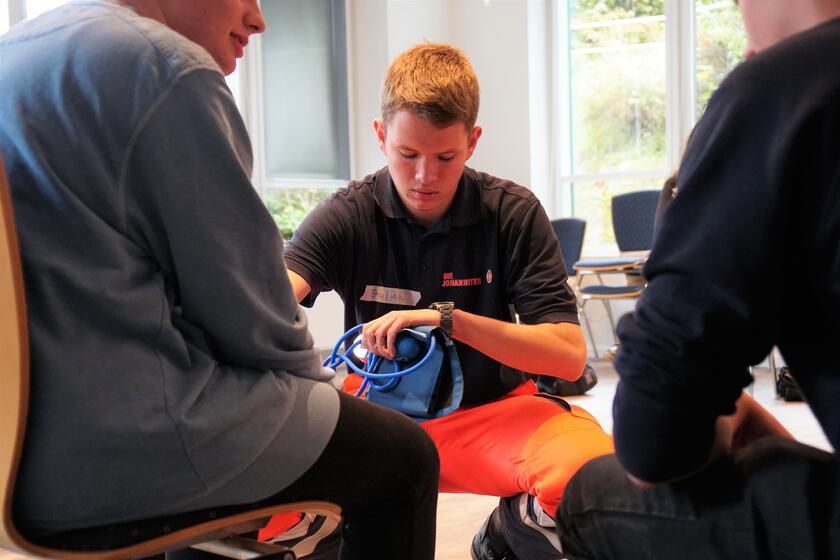 Regelmäßige Fortbildungen sind für Schulsanitäter wichtig, um eine qualifizierte Versorgung der Mitschülerinnen und Mitschüler zu gewährleisten. Ein Fortbildungstag besteht aus einer theoretischen Einführung und dann verschiedenen Praxisbeispielen.