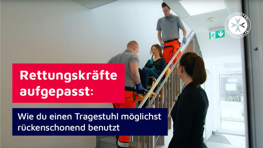 Einen Tragestuhl zu bewegen gehört zu den regelmäßigen Aufgaben im Einsatz. Wie du diesen möglichst rückengerecht und gesund trägst, zeigen wir dir in diesem Video. Zusätzlich bekommst du eine präventive Übung an die Hand, mit der du deine Beinmuskulatur stärken kannst.