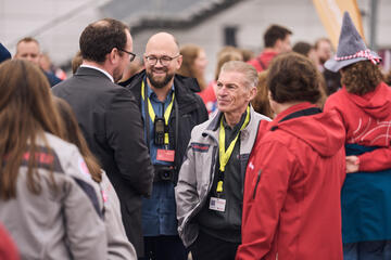 Neben Johanniter-Präsident Volker Bescht sowie Thomas Mähnert und Christian Meyer-Landrut vom Bundesvorstand fehlte es auch an Politikprominenz aus der Region nicht: Zusätzlich zu Erfurts Oberbürgermeister Andreas Horn haben Thüringens Ministerpräsident Mario Voigt sowie dessen Amtsvorgänger Bodo Ramelow sein Kommen zugesagt. Doch vor allem tummelten sich viele Johanniterinnen und Johanniter mit Familie und Freundeskreis auf dem Messegelände in Erfurt.