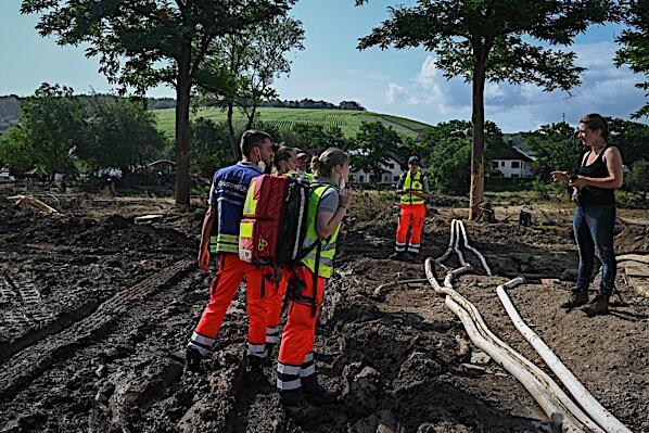 Die Folgen der Klimakatastrophe machen sich 2021 auch in Deutschland bemerkbar. Starkregen, Wassermassen und Erdrutsche hatten im Juli verheerende Schäden in Nordrhein-Westfalen und Rheinland-Pfalz verursacht. Mehr als 3.000 Johanniterinnen und Johanniter waren bei dem größten Einsatz seit Bestehen der Hilfsorganisation aktiv, um Betroffene zu retten und zu betreuen – die meisten von ihnen ehrenamtliche Helferinnen und Helfer im Katastrophenschutz.