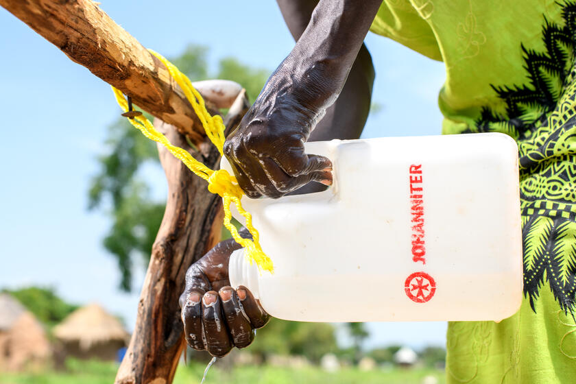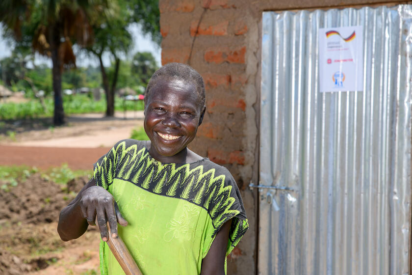 Die 50-jährige Regina Acayo musste 2017 wegen des Bürgerkriegs aus ihrem Heimatland, dem Südsudan, fliehen. Zwar fand sie in Uganda in einem Haus in der Flüchtlingssiedlung Palorinya eine neue Bleibe, aber sie hatte weder eine eigene Latrine noch eine Waschmöglichkeit. So musste sie in das Haus eines Nachbarn gehen und darum bitten, die Latrine benutzen zu dürfen, wann immer es nötig war. Regina badete immer nur spät in der Nacht unter freiem Himmel im Hof. "Ich habe gewartet, bis die Leute schlafen gingen, damit ich mich auf dem Hof waschen konnte, weil ich kein Badezimmer hatte", sagt sie.