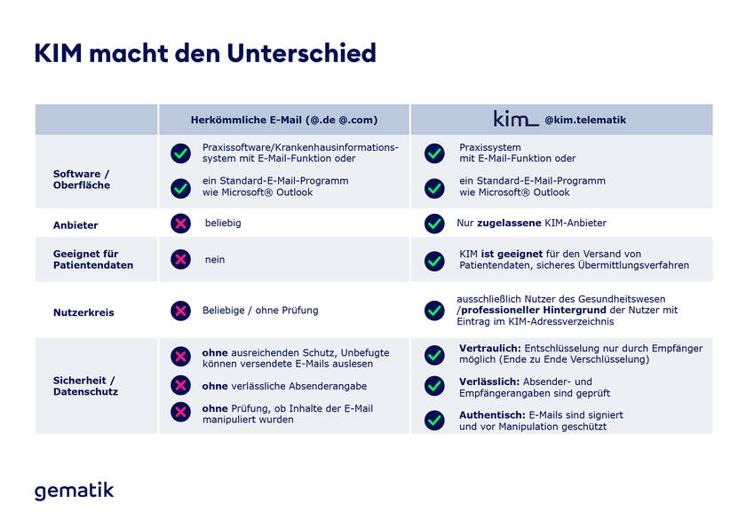 Das erste TI-Modul, das im Pflegedienst eingerichtet wurde, ist KIM. Die Abkürzung steht für „Kommunikation im Medizinwesen“. KIM ermöglicht einen sicheren, datenschutzkonformen Austausch von Daten und Informationen per E-Mail. So kann eine Arztpraxis beispielsweise rechtssicher Medikamentenpläne, Arbeitsanweisungen und digitale Rezepte an den Pflegedienst senden ‒ ganz ohne Ausdruck auf Papier, Faxe oder Kurierfahrten. Voraussetzung ist allerdings, dass die Praxen teilnehmen.