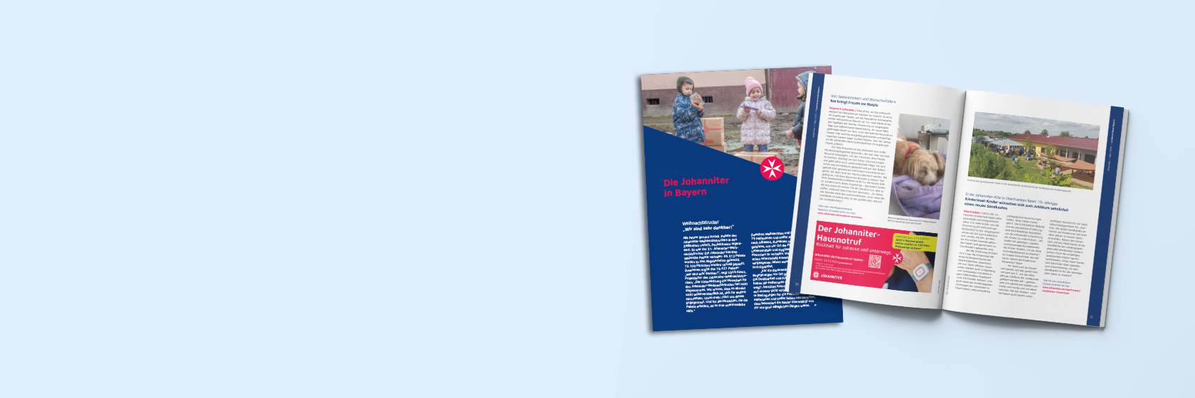 Von Bad Kissingen im Norden bis Fischen im Allgäu engagieren sich die Johanniter in Bayern für die Hilfe von Mensch zu Mensch. Was die Ehren- und Hauptamtlichen in den sieben Regionalverbänden leisten und welche Projekte sie auf die Beine stellen, zeigen wir für die Freundinnen und Freunde der Johanniter-Unfall-Hilfe alle drei Monate neu in den Regionalseiten unserer Zeitschrift für Fördermitglieder.