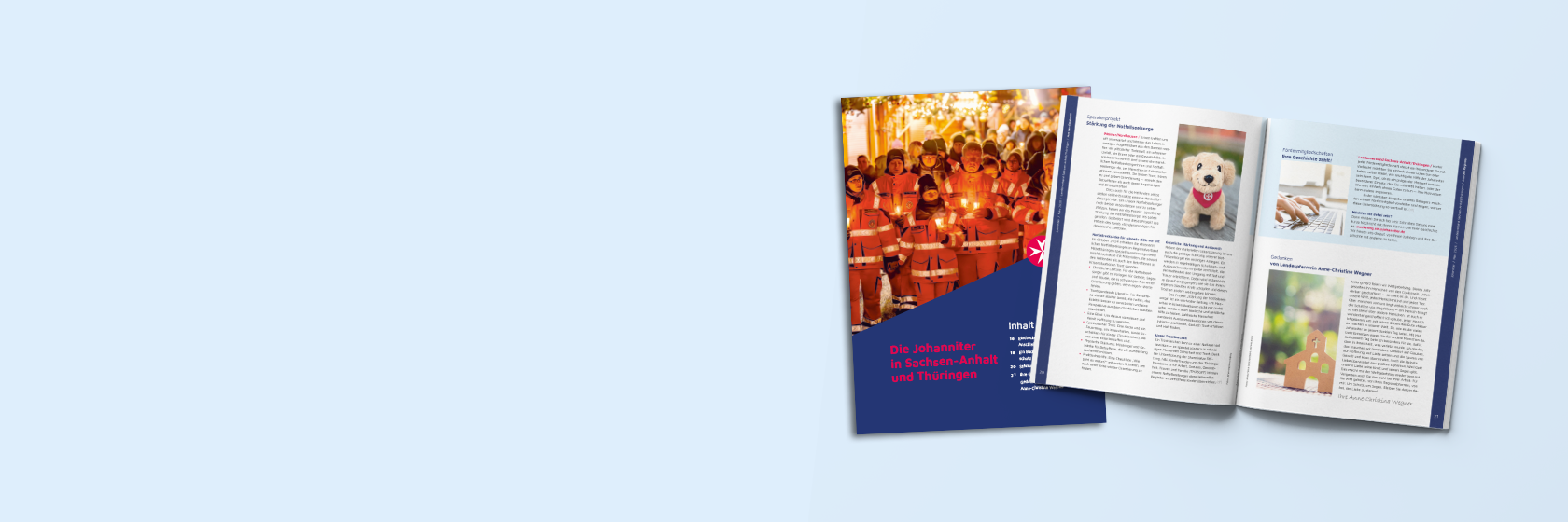 Von Seehausen im Norden bis Heidburg im Süden engagieren sich die Johanniter im Landesverband Sachsen-Anhalt und Thüringen für die Hilfe von Mensch zu Mensch. Was die Ehren- und Hauptamtlichen in den sieben Regionalverbänden leisten und welche Projekte sie auf die Beine stellen, zeigen wir für die Freundinnen und Freunde der Johanniter-Unfall-Hilfe alle drei Monate neu in den Regionalseiten unserer Zeitschrift für Fördermitglieder.
