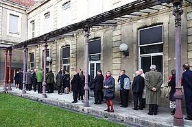Teilnehmer des Winterkapitels vor dem Familienhaus der Französischen Kommende