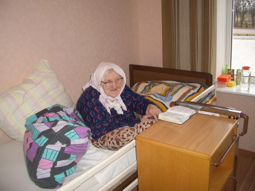 Im östlichen Teil des Königsberger Gebietes bestand und besteht auch noch ein großer Bedarf an Heimplätzen für alte und bedürftige Menschen. Pastor Heye Osterwald, von 1996 bis 2002 Gemeindepfarrer in Gumbinnen und dann bis 2008 Propst in Königsberg, wollte ein Zeichen setzen und auf die Situation der Alten hinweisen und ein Beispiel für würdiges Wohnen im Alter geben. Er ließ nahe Darkehmen eine alte, deutsche Schule zu einem Altenheim mit über 24 Plätzen umbauen, das am 10. Juni 2006 eingeweiht und auf den Namen „Carl-Blum-Haus“ getauft wurde. Es ist das erste Altenheim in kirchlicher Trägerschaft im russischen Teil Ostpreußens. Wir haben beim Aufbau des Carl-Blum-Hauses geholfen und unterstützen den laufenden Betrieb mit med. Gerät und Hilfsartikeln, Medikamenten, Bettwäsche und -decken als auch finanziell, und wir haben Patenschaften übernommen.