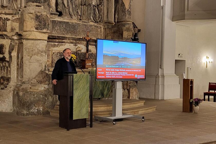 Die Vortragsreihe "Bild und Botschaft" der Johanniter Hilfsgemeinschaft Dresden bietet die Möglichkeit, ausgewählte Kunstwerke besser zu verstehen. Da sie oftmals religiöse Bezüge haben, wird jeweils ein Vortrag aus kunsthistorischer und theologischer Sicht gehalten. Für Beiträge und Fragen zum Werk aus der Zuhörerschaft bietet sich auch Gelegenheit. Die ausgewählten Kunstwerke stammen hauptsächlich aus dem Fundus der Staatlichen Kunstsammlungen Dresden – unserem Kooperationspartner. "Bild und Botschaft" widmet sich aber auch zeitgenössischer Kunst.