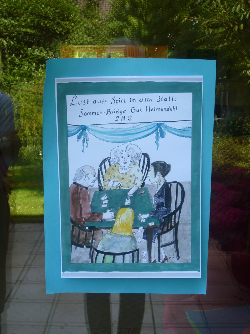 Die ländliche Gutsatmosphäre, die hervorragende Organisation durch unser „Organisationsteam“, die leibliche „Stärkung“ unter den Sonnenschirmen im Gutshof, die routinierte Turnierleitung und die vielen netten „Bridgebegeisterten“ machen diese Sonntagnachmittage für die Teilnehmer und Teilnehmerinnen, für beide JHGs und für die Organisatoren immer wieder zu einem unvergeßlichem Erlebnis.