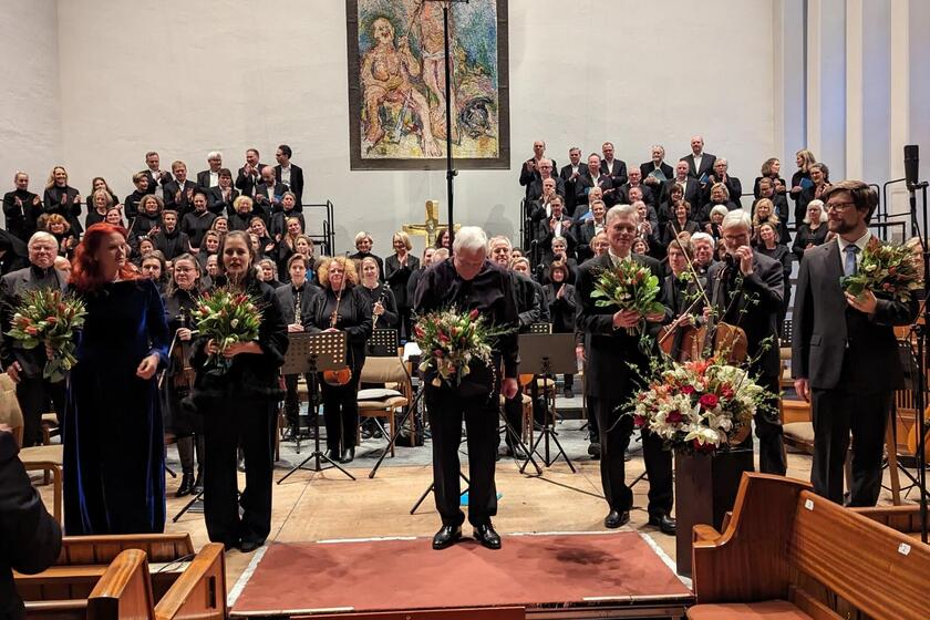 Das alles aber war während des Konzerts vergessen! Erneut durften wir uns am Chor und Orchester der Alumni des Christianeums unter der Leitung von Dietmar Schünicke erfreuen; zur Aufführung kamen Felix Mendelssohn Bartholdys Psalm 42 und die Harmoniemesse von Joseph Haydn.