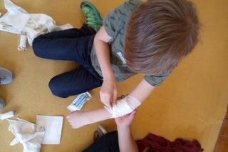 In der Pause zwischendurch malten sich die Kinder die Verbände gegenseitig bunt an. Zum Abschluss gab es für jedes Kind eine personalisierte Urkunde.