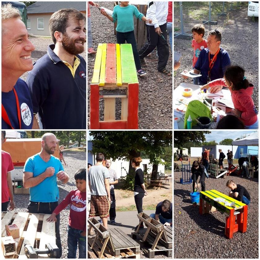 Zusammen mit zahlreichen anderen Organisationen in unserer Stadt hat sich auch die Johanniter-Hilfsgemeinschaft am Bundesfreiwilligentag am 15. September 2018 in Magdeburg beteiligt. Natürlich haben wir unsere Aktivitäten hierfür an dem Ort geplant und vorbereitet, an dem wir seit Monaten unser Hauptbetätigungsfeld haben. Zusammen mit der Leitung und einzelnen Mitarbeitern der Landesaufnahmeeinrichtung (LAE) im Magdeburger Herrenkrug haben wir uns eine handwerkliche Aktion vorgenommen. Wir würden gemeinsam mit den hier ansässigen Flüchtlingen Gartenmöbel aus Transport-Paletten zimmern wollen. Brigitte Nehring, unsere neue Flüchtlings-Koordinatorin hatte ausreichend viele solcher Paletten organisieren können. Außerdem war mit Thomas Schmidt aus Schönebeck ein Zimmer gewonnen worden, der sich nicht nur mit seiner Fachkenntnis, sondern auch mit dem geeigneten Werkzeug und dem nötigen Kleinmaterial zum Mitmachen bereiterklärt hatte.