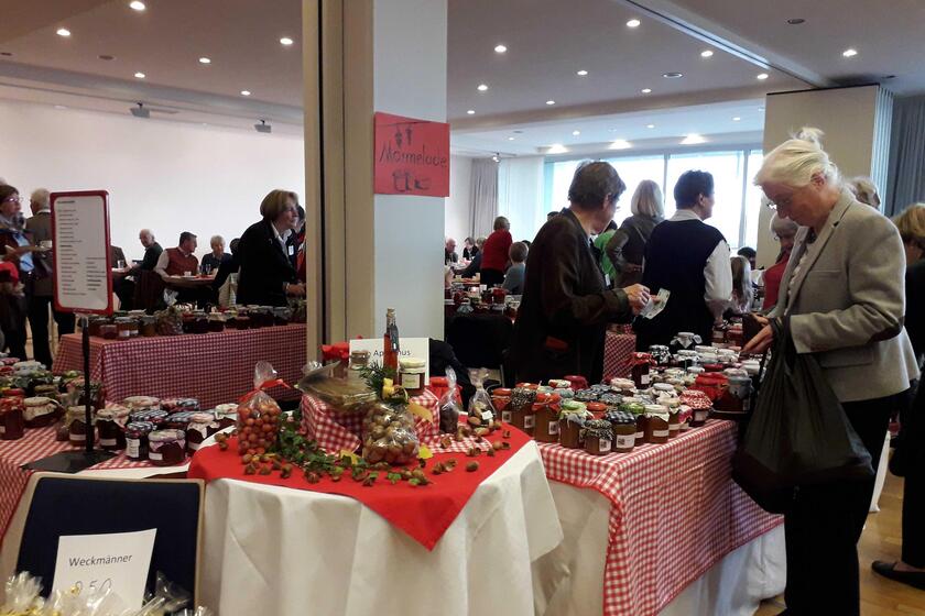 Insofern war es für die Magdeburger eine besondere Freude, diesen Weihnachtsmarkt nun einmal selbst zu erleben. Die zwei Etagen im „Haus der Evangelischen Kirche Bonn“ waren voll ausgestattet mit Verkaufstischen. Selbstgekochte Marmeladen zuhauf wurden angeboten, gut erhaltene und teilweise edle Kleidungsstücke ebenso, wie Porzellan- und Glaswaren. Natürlich waren auch Bücher im Angebot und natürlich Kinderspielzeug.