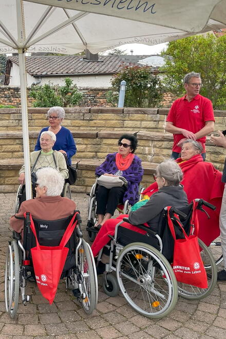 Die Mitglieder der JHG Pfalz machen mit einigen Senioren aus dem Johanniter Haus Kleinniedesheim einen Ausflug zum Schloss Kleinniedesheim.