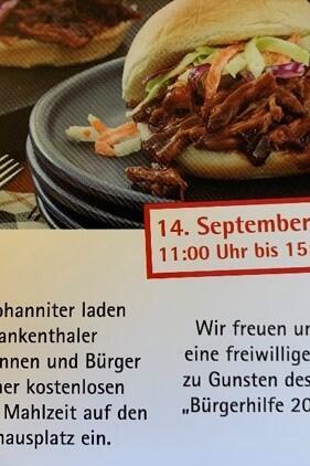 Die Johanniter laden Frankenthaler Bürgerinnen und Bürger am 15. Juli 2023 zu einer kostenlosen warmen Mahlzeit auf den Rathausplatz ein.