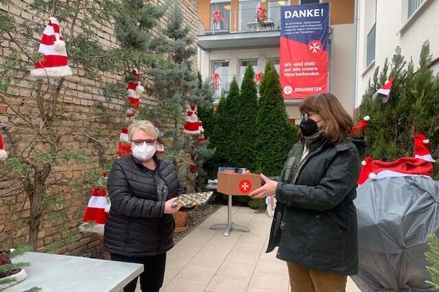 Aus Liebe zum Leben und zur Gesunderhaltung der Bewohnerinnen und Bewohner leistet das Mitarbeiter-Team des Johanniter-Hauses einen unermüdlichen Dienst am Nächsten. Die gewissenhafte und liebevolle Betreuung der anvertrauten Menschen in der gegenwärtigen Corona-Lage ist dabei eine besonders belastende und kräftezehrende Aufgabe. Denn der Weg aus der Pandemie ist schwer kann nur mit vereinten Kräften gelingen. Es braucht Pflegekräfte, die sich bis an die Grenzen ihrer Belastbarkeit einbringen. Aber auch Heimbewohner mit ihren Familien, die die aktuellen unbequemen Einschränkungen verständnisvoll annehmen und Solidarität im Zusammenleben zeigen. Die Johanniter-Hilfsgemeinschaft Pfalz hat als Anerkennung für den besonderen Einsatz der Mitarbeiterinnen und Mitarbeiter sowie als Aufmunterung für die Bewohnerinnen und Bewohner des Johanniter-Hauses ein Sortiment an kleinen Aufmerksamkeiten zusammengestellt und an Frau Calmes übergeben. Wir hoffen sehr, damit etwas Freude bereiten zu können und wünschen dem Johanniter-Haus Kleinniedesheim eine besinnliche Advents- und Weihnachtszeit. Bleiben Sie alle gesund und behütet!