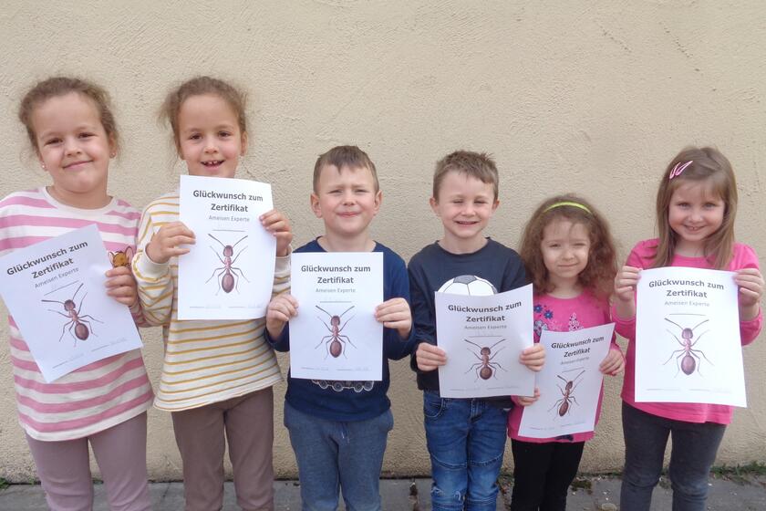 Darüber hinaus fand noch ein Ameisenquiz statt. Die Kinder nahmen daran mit großem Erfolg teil und erhielten im Anschluss ein Zertifikat, dass sie als „Ameisenexperte“ auszeichnet. Das Projekt war sehr spannend und interessant. Alle Beteiligten haben viel dazu gelernt und freuen sich immer, wenn mal wieder eine Arbeiterin die Regenbogengruppe besuchen kommt.