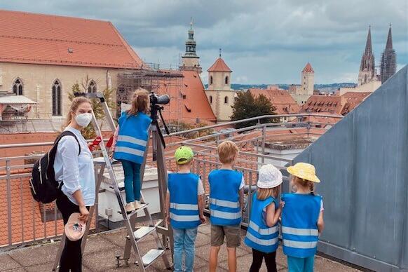 Zum Abschluss des Projekts stand dann etwas ganz Besonderes auf dem Plan: Der Besuch der Sternwarte Regensburg. Die Volkssternwarte Regensburg ist eine der ältesten Volkssternwarten Deutschlands, und das wollten sich die Kinder natürlich nicht entgehen lassen. Gemeinsam mit den Erzieherinnen ging es also mit dem Bus in die Stadt. „Allein die Busfahrt war für die Kinder schon sehr aufregend“, so Einrichtungsleitung Karola Tamm.