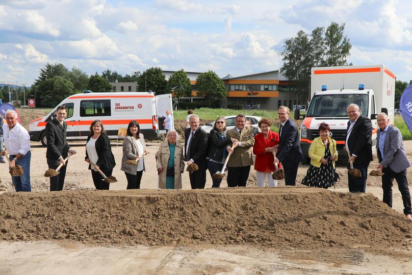 Johanniter und alle Beteiligten feiern den Spatenstich