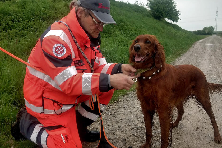 Zudem stand die Ausbildung in der Flächensuche auf dem Programm. Es wurden Suchen entsprechend eines Realeinsatzes durchgeführt, wobei die Hundeführer beim Auffinden der vermissten Personen ihr erlerntes Wissen über Suchtaktik, Karte Kompass, Funk und Erste-Hilfe anwenden mussten. „Die Teams waren hochmotiviert und zeigten sehr gute Arbeit“, berichtet Andreas Ebeling, Leiter der Johanniter-Rettungshundestaffel in Schweinfurt und ergänzt: „Auch unsere Anfänger kamen nicht zu kurz und durften ihr Können und ihre Fähigkeiten unter Beweis stellen.“ Für beide Staffeln war es ein lehrreiches und interessantes Ausbildungswochenende. „Der Besuch der Straubinger Kolleginnen und Kollegen war sehr aufschlussreich, es fand ein reger Ideen- und Gedankenaustausch statt. Es wird nicht das letzte Treffen gewesen sein!“ freut sich Ebeling über den gelungenen Besuch.