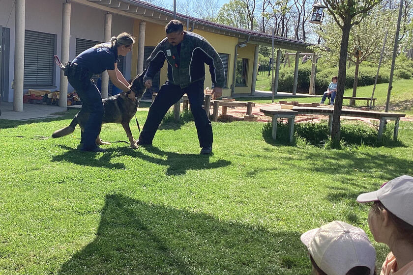 Ein bisschen aufgeregt waren die Kinder der Kinderinsel schon. Schließlich bekommt man nicht jeden Tag Besuch von der Polizei! Doch die Aufregung legte sich schnell als sich Carina Lang, Pascal Michl und Marcel Rauscher den Kindern vorstellten. Und einen besonderen Gast hatten die Polizisten auch noch dabei: Polizeihund Rudi, der in seiner Freizeit bei Hundeführerin Carina als Familienhund lebt. Ansonsten ist Rudi ein echter Profi und wertvoller Helfer für die Polizei. Gespannt beobachteten die Kinder zum Beispiel wie er Dinge aufspüren kann.