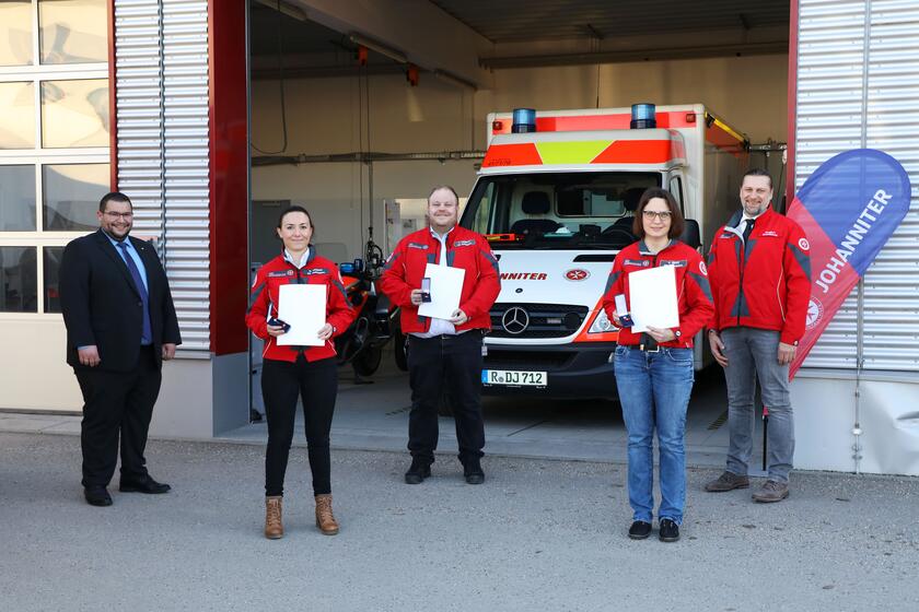 „Wir schätzen diese herausragende Leistung sehr, und wir sind stolz, solche Mitarbeiter in den eigenen Reihen zu haben. Deshalb erhielten alle drei das Ehrenzeichen der Johanniter-Unfall-Hilfe. Dieses Engagement ist keineswegs selbstverständlich, und die Auszeichnung ist nur eine kleine Anerkennung, für das was seit 18 Monaten Außerordentliches geleistet wurde“, so Johanniter-Rettungsdienstleiter Frank Zirngibl, bei dem auch die Corona- und Impfdienste für Ostbayern angesiedelt sind. Auch Tobias Karl, Regionalvorstand der Johanniter in Ostbayern gratulierte dem Trio zur Auszeichnung.