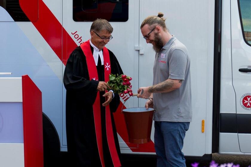 Johann Georg von Hülsen, Mitglied des Johanniterordens, hob die historische Verpflichtung der Johanniter hervor, sich für Kranke und Hilfsbedürftige einzusetzen. „Die Realisierung des Projekts und die damit verbundenen Hilfsleistungen für die Bedürftigen zeigen einmal mehr, dass je besser wir zusammenarbeiten, desto mehr können wir gemeinsam erreichen. Mögen viele Betroffene von den vielfältigen Möglichkeiten dieses Busses profitieren.“ Er unterstrich die Bedeutung der engen Zusammenarbeit zwischen dem Johanniterorden und der Johanniter-Unfall-Hilfe e.V. und wünschte dem Team und dem Projekt viel Erfolg.