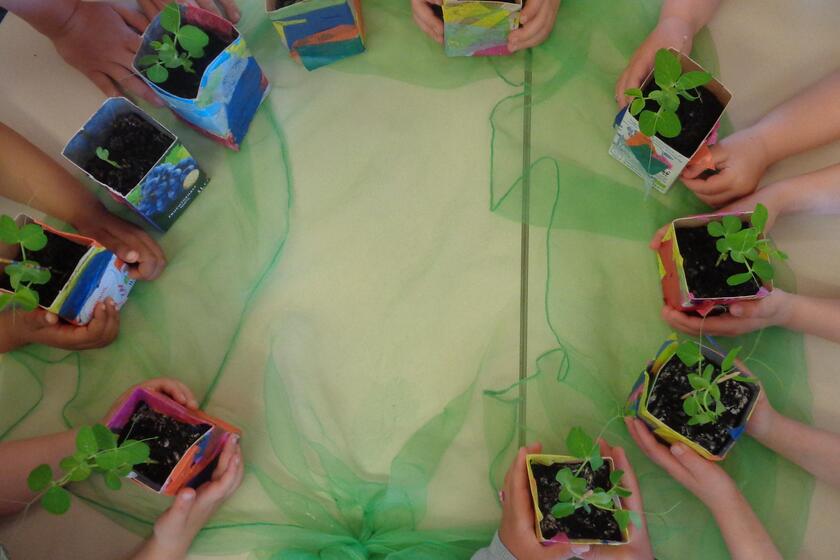 Die Kinder des Johanniter-Kinderhauses „Unterm Himmelszelt“ haben Schalerbsen eingesät. Diese werden nun bis zur Ernte gegossen und gepflegt.