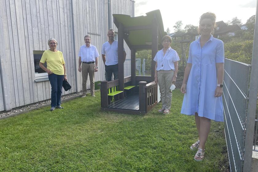 Ebenso dankte die Bürgermeisterin der örtlichen Feuerwehr. Diese habe beim Aufbau des Spielhauses tatkräftig mitgeholfen. Es seien immerhin zehn kräftige Männer notwendig gewesen um das Spielhaus zu versetzen. Einrichtungsleitung Christin Preßl freute sich ebenfalls sehr über die tolle Unterstützung. Die Kindertagesstätte ist aktuell mit 56 Kindern belegt, davon sind zwölf Krippenkinder.