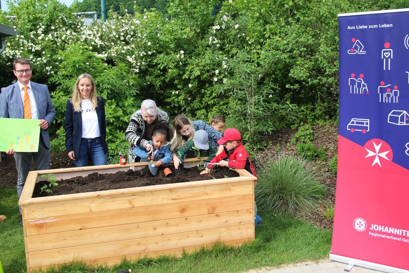 Parsberg Das Johanniter-Kinderhaus „Glückspilz“ in Parsberg darf sich über die Spende eines Hochbeetes freuen.