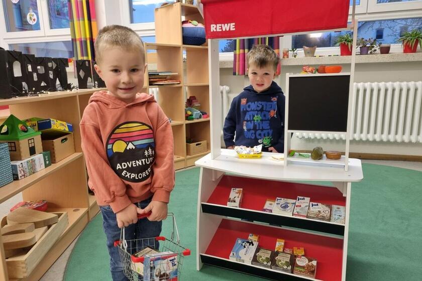 Deuerling ■ Der Rewe-Markt Steidl in Nittendorf hat dem Johanniter-Kindergarten „Frechdachs“ einen Kaufladen inklusive Zubehör gespendet.
