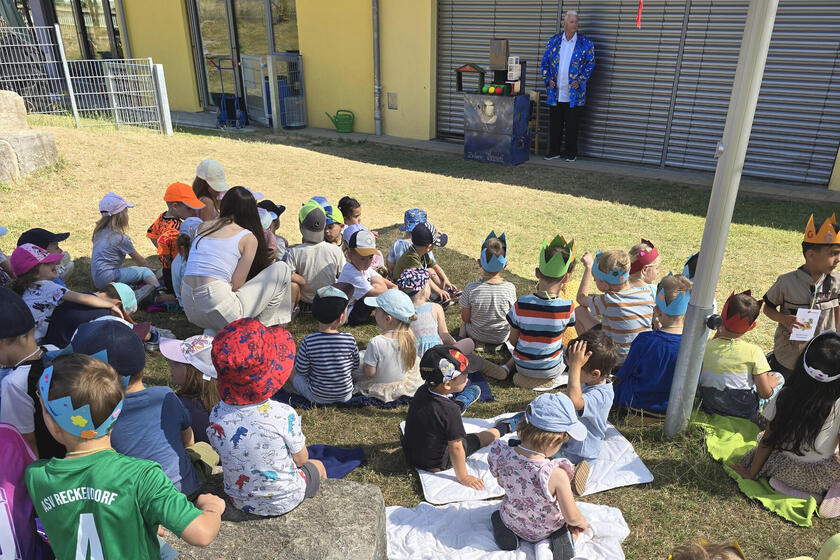 Zweiter Höhepunkt des großen Kinderfestes war der Auftritt von Zauberer Tassini, der sich natürlich auch zahlreiche Zauberlehrlinge aus dem Publikum an seine Seite holte. Ein Riesenapplaus war ihnen sicher!