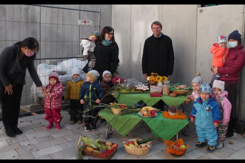Waldershof ■ Die Kinder des Johanniter Kinderhauses St. Sebastian haben Anfang Oktober im Garten der Einrichtung ihr Erntedankfest gefeiert. Zusammen mit den drei Krippengruppen zelebrierte auch der evangelische Pfarrer Andreas Kraft das Fest.