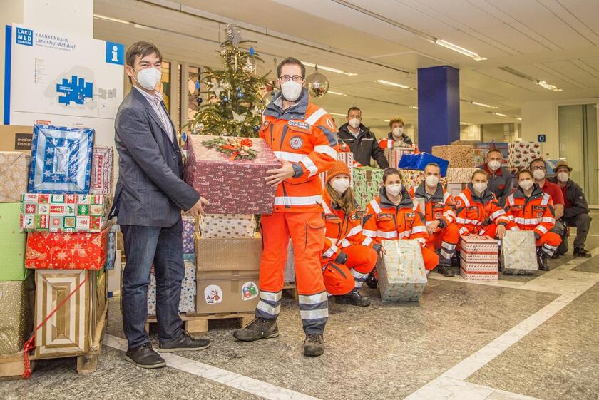 Landshut Die Mitarbeiter und Familien des Landratsamt Landshut und den LAKUMED Kliniken haben den Johanniter-Weihnachtstruckern 135 Pakete übergeben.
