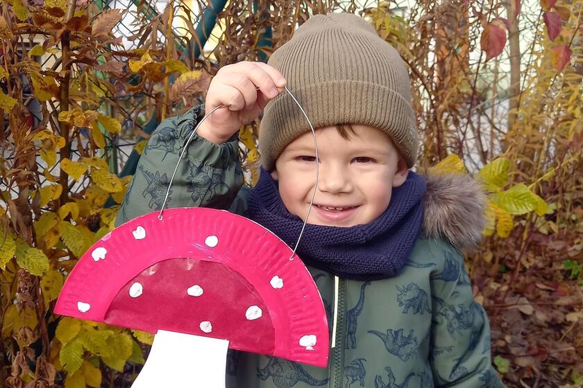 Im Rahmen der aktuell gültigen Corona-Vorschriften trafen sich alle an der frischen Luft, um die Martinsgeschichte nicht zu verpassen. Anschließend konnten die Kinder in Form eines kleinen Umzuges ihre selbstgebastelten, leuchtenden Fliegenpilz-Laternen präsentieren. Während des Umzuges sangen alle zusammen noch viele Martinslieder. Zum Abschluss gab es für jedes Kind eine Martinsgans zum Teilen.