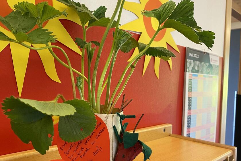 Zum Elterntag bekamen die Eltern von ihren Kindern noch je eine Erdbeerpflanze, welche die Kinder zuvor selbst umgepflanzt hatten. Außerdem haben die Kinder aus Eierkartons eine Erdbeere gebastelt und ihren Eltern ein Herz aus Papier geschenkt. Darauf stand: „Liebe Mama, lieber Papa, eine Pflanze braucht Sonne, um Pflanze zu werden. Ein Kind braucht Liebe, um Mensch zu werden. Danke, dass ich sein darf, wie ich bin.“
