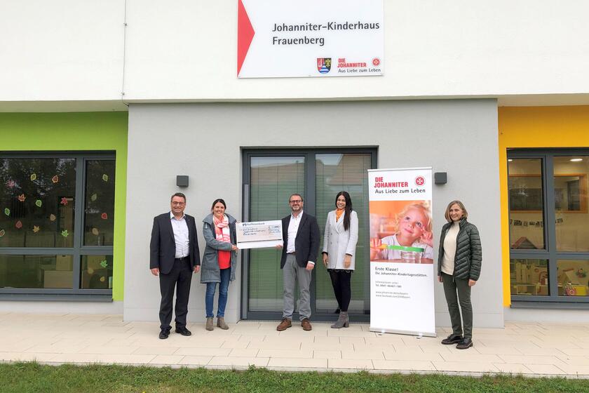 Frauenberg ■ Große Freude bei den Kindern des Johanniter-Kinderhauses Frauenberg: Die Kleinen dürfen sich über eine großzügige Spende freuen. Die Geschäftsstelle Laaber der Raiffeisenbank im Oberpfälzer Jura spendete 1000 Euro an das Johanniter-Kinderhaus. Den symbolischen Scheck nahmen Regionalvorstand Martin Steinkirchner, Sylvia Meyer, Sachgebietsleiterin Kindereinrichtungen bei den Johannitern, und Einrichtungsleiterin Katharina Kemény entgegen.