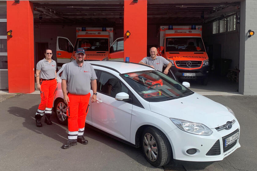 Am 27. Juli brachen nun drei weitere Helfer von der Schlüsselfelder Rettungswache aus Richtung Rheinland-Pfalz auf. Zugtruppführer Christian Skibak, Führungsassistent Anthony Brunner und Helferin Daniela Krapf werden im Rahmen des Standard Hilfeleistungskontingents Oberfranken für 72 Stunden vor Ort sein, bis sie wieder abgelöst werden. Sie bilden gemeinsam den Führungskopf einer Einheit, die einen Betreuungsplatz in der Krisenregion – voraussichtlich in einer der am stärksten betroffenen Regionen um Bad Neuenahr-Ahrweiler - aufbauen wird.