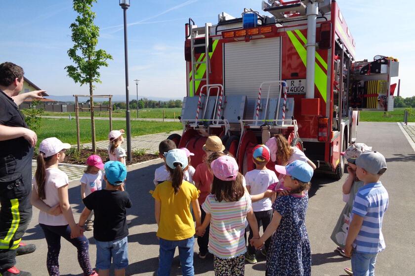 Der Johanniter-Kindergarten „Weitblick“ in Alteglofsheim hat eine Brand-Evakuierungs-Übung mit einem Feuerwehrbesuch abgeschlossen