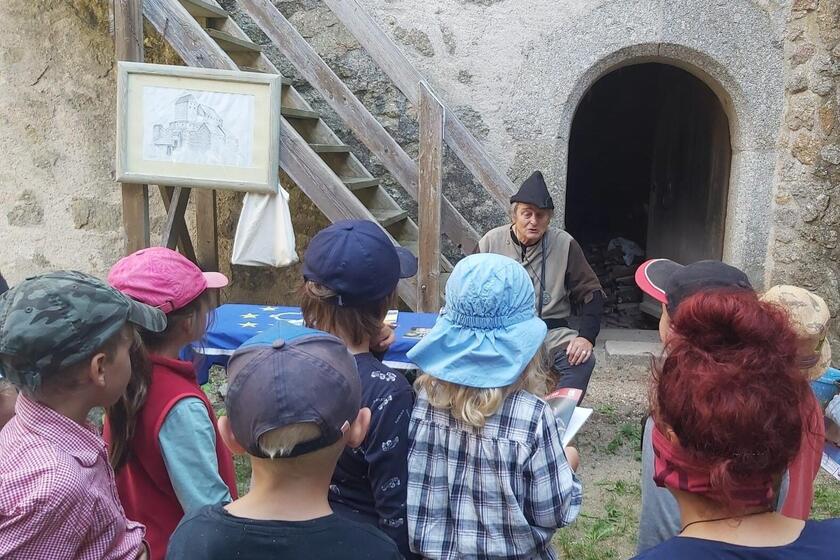 Schon früh am Morgen machte sich die Gruppe auf den Weg, um von Stefling aus zur Burgruine zu wandern. Nachdem die Kinder und das Team des Waldkindergartens die anspruchsvolle Strecke bezwungen haben, wurden sie von Kastellan Franz Joseph Vohburger am Burgtor in Empfang genommen.