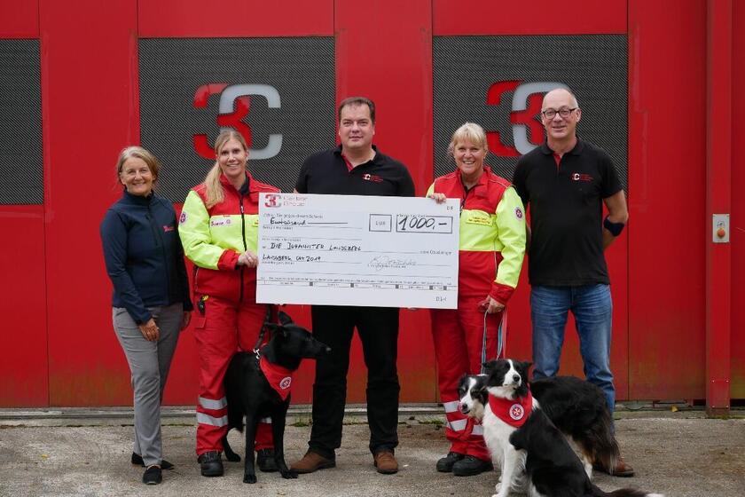 Als die Staffel in diesem Jahr kurzfristig auf der Suche nach einem Ort für eine großangelegte Prüfung benötigte, unterstützte Vorstand Karsten Jerschke schnell und unkompliziert: Er bot Bereitschaftsleiterin Melanie Siefener und den aus ganz Deutschland angereisten Teams an, Teile seines Geländes zu nutzen. Doch damit nicht genug: Darüber hinaus beschloss Herr Jerschke anschließend, die Johanniter-Rettungshundestaffel auch mit einer Spende zu fördern und stellte einen großzügigen Scheck in Höhe von 1.000 Euro aus. Melanie Siefener, ihre Stellvertretung Claudia Adam und Sibylle Merx vom Johanniter-Regionalverband Oberbayern freuten sich wahnsinnig über die Unterstützung und besuchten Herrn Jerschke und sein Team in Landsberg, um den Scheck entgegenzunehmen. „Im Rahmen der Prüfung konnte ich die spannende Arbeit der Rettungshundestaffel mit eigenen Augen erleben und war nachhaltig beeindruckt“, berichtet Karsten Jerschke. „Daher haben wir uns entschieden, die Johanniter auch mit einer Spende zu unterstützen und die Tätigkeiten der Staffel zu fördern.“ Die Rettungshundestaffel der Johanniter besteht aus ehrenamtlichen Mitgliedern, die in ihrer Freizeit ihre Hunde trainieren, an regelmäßigen Prüfungen teilnehmen und neben Übungen natürlich auch Einsätze absolvieren – eine sehr zeit- und auch kostenintensive Tätigkeit. Doch wenn ein Mensch vermisst wird, sind die Helfer und ihre vierbeinigen Kollegen besonders gefragt, denn oft gibt es keine andere Möglichkeit, eine Person aufzuspüren und sicher zu bergen. „Die Unterstützung von 3C-Carbon ist unglaublich wichtig und eine tolle Hilfe für uns, um die Staffel weiterhin erfolgreich führen zu können“, freut sich Melanie Siefener.