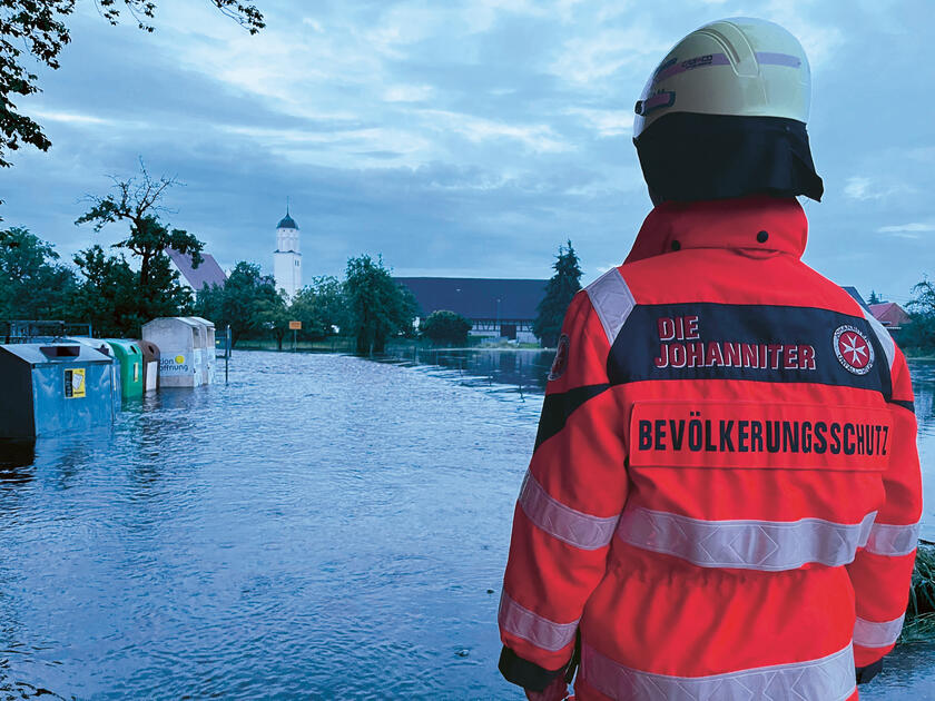 Der Vielzahl der Betroffenen standen 500 ehren- und hauptamtliche Einsatzkräfte der Johanniter aus allen sieben Regionalverbänden mit Unterstützung von Kräften aus Baden-Württemberg zur Seite. 200 weitere waren in Bereitschaft. Schnell, professionell und engagiert halfen sie dabei, die Auswirkungen der Katastrophe zu mildern. In den besonders betroffenen Regionen in Oberbayern, Ostbayern und Schwaben waren sie in vielen Bereichen aktiv: Johanniterinnen und Johanniter unterstützten die Einsatzleitungen vor Ort, koordinierten Hilfsmaßnahmen und halfen bei der Verteilung von Hilfsgütern. Fachkräfte leisteten medizinische Notfallhilfe, waren an der Evakuierung von Pflegeheimen und Wohnhäusern beteiligt und versorgten Menschen mit den Kriseninterventionsteams psychosozial, als die betroffenen Bewohner in ihre teilweise massiv beschädigten Häuser zurückkehren durften. Zudem stellten viele Helferinnen und Helfer die medizinische Notfallversorgung sicher, insbesondere für Menschen mit eingeschränkter Mobilität oder mit Vorerkrankungen.