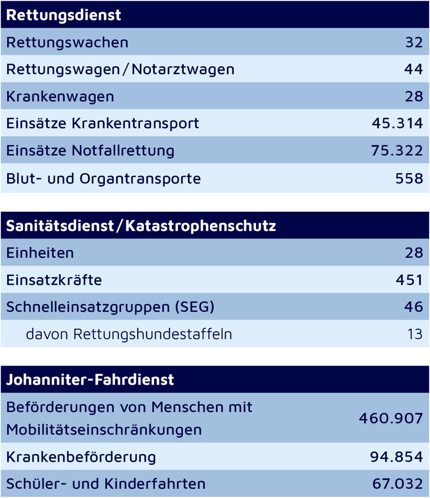 Mit einem Plus schlossen ebenfalls weitere Bereiche ab, in denen die Johanniter für das Wohl der Bevölkerung bereitstehen. Im Katastrophen- und Bevölkerungsschutz gab es nicht nur einen personellen Zuwachs um 7 Prozent, sondern auch bei den Einheiten, in denen sich diese meist Ehrenamtlichen engagieren: Sowohl bei den Schnelleinsatzgruppen Betreuung, der Krisenintervention und der Einsatznachsorge sattelten die Johanniter mit dringend benötigten Händen in der Helferschaft auf. Denn nur so lässt sich den gestiegenen Anforderungen in diesen Bereichen gerecht werden.