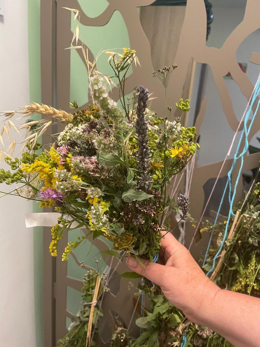 Im August hat das Kräuterbuschen binden Tradition. Nach dem Binden wurden die Sträuße in der Tagespflege getrocknet und vom Pfarrer pünktlich zu Maria Himmelfahrt geweiht.