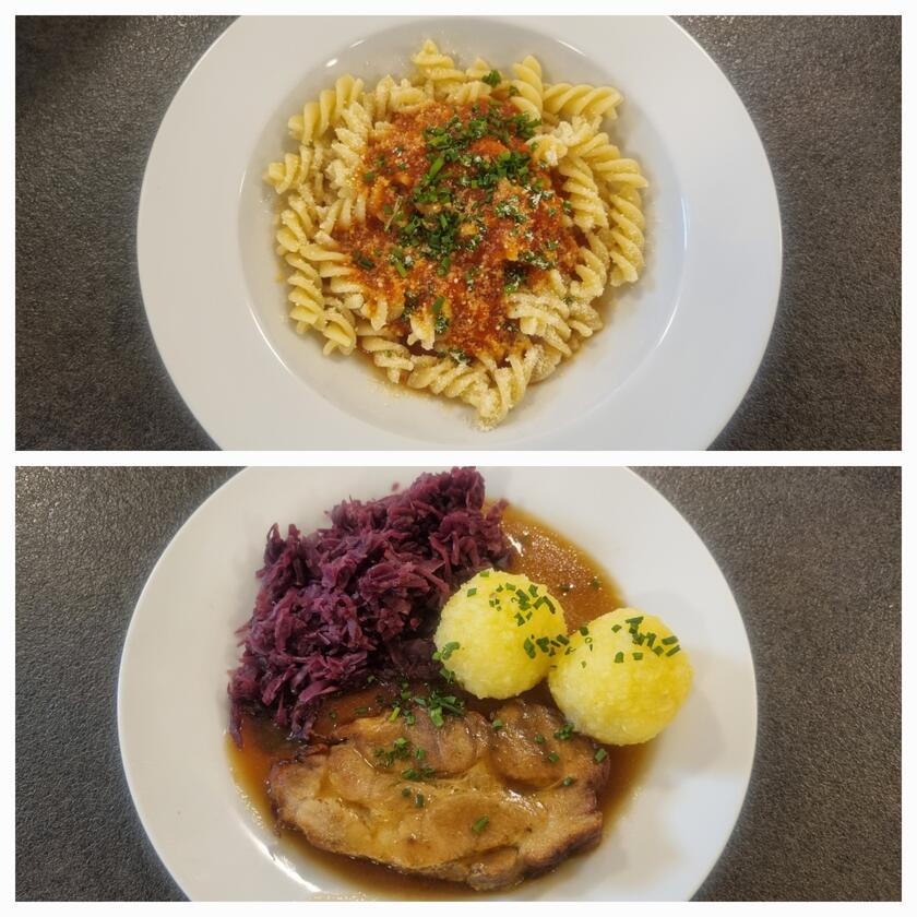 Zur Pfingstfeier kochte das Team heute ein festliches Mahl für die Tagesgäste. Es gab Schweinebraten mit Knödel und Blaukraut oder alternativ Nudeln mit Tomatensoße.
