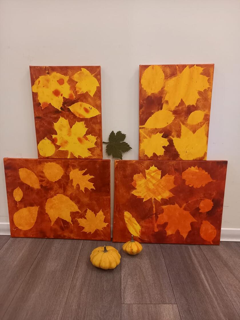 Der Herbst zieht mit selbst gestalteten Bildern in unsere Tagespflege ein.