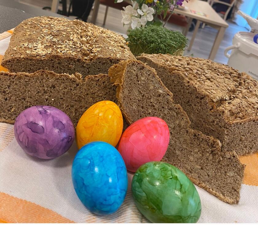 Am 23.04.2025 haben wir unser „besonderes Frühstück“ ganz auf Ostern ausgelegt. Es gab selbst gebackenes Brot, bunte Eier und Kresse.