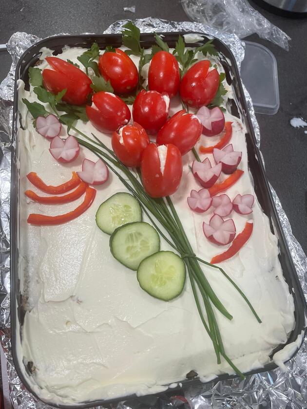 Die leckere Brottorte gab es in dreierlei Varianten: vegetarisch, mit Schinken und lactose-/glutenfrei.