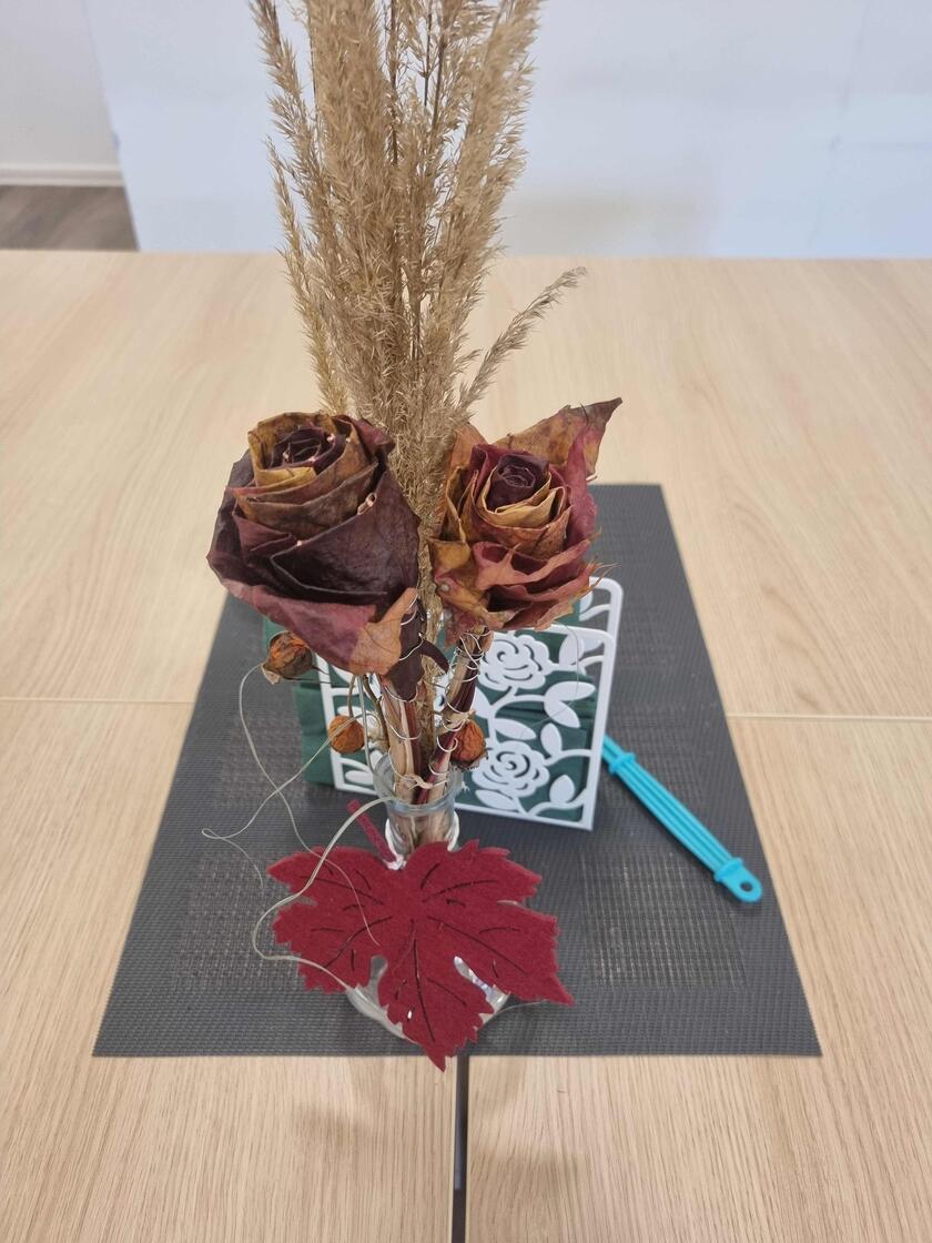 Unsere Tagesgäste haben diese wunderschönen Blätterrosen gebastelt.