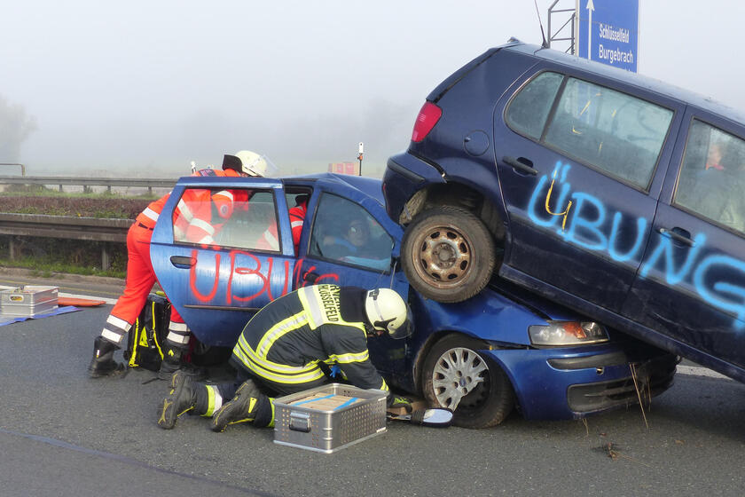 Inszenierter Massencrash auf der A3 bei Schlüsselfeld fordert rund 200 Helfer von Feuerwehr und Rettungsdienst