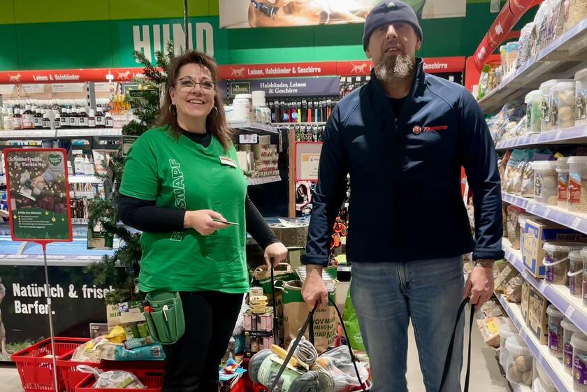 Im Januar fand bereits die zweite Übergabe von Gutscheinen und Futterspenden statt. Diese Unterstützung ist ein wertvoller Beitrag zur Versorgung der Hunde im "QuarTier" und zeigt die große Hilfsbereitschaft der Fressnapf-Kunden.